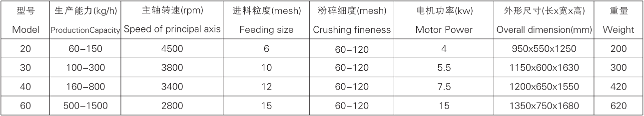 本機采用了風輪式調遣轉刀,定刀進行沖擊、剪切研磨,粉碎進機腔內產生了強力的氣流,把粉碎室的熱量和成品一起從啼闡流出,粒度大小通過更換篩網獲得。