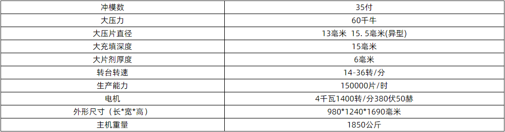 本機是一種雙壓式自動旋轉,連續壓片的機器,將顆粒狀原料壓制成片劑。它主要用于制藥工業的片劑生產,同時適用于化工、食品、電子等工業部門。外圍罩殼為全封閉形式,材料采用不銹鋼,內部臺面用不銹鋼材料,能保持表面光澤與防止交叉污染,符合GMP要求。裝有透明玻璃的門窗,能清楚觀察壓片的狀態,側面板能全部打開,易于內部清理和保養。所有控制器和操作件均布局合理。采用變頻調速裝置進行電氣調速、操作方便,轉動平穩,安全準確。配有過載保護裝置,當壓力過載時,能自動停機。實行機電一體化,采用觸摸鍵及屏幕顯示。傳動系統密閉在機器主體下方油箱中,是完全分隔的獨立部件,亦不會有相互污染,又使傳動付浸潤在油池中,易散熱且耐磨。機器裝有吸量器等與ZP33型老產品具有通用結構,有得標準化、系列化。沖模可與ZP19、ZP33、ZP33B、ZP35、ZP37壓片機通用。