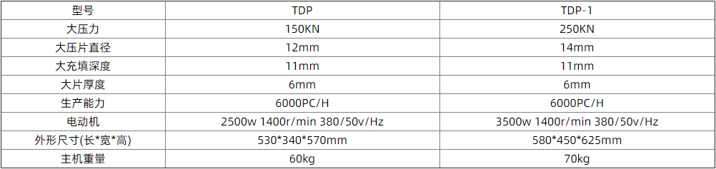 本機用以將各種顆粒原料壓制成圓片,是適合于實驗室試制和小規模生產。其特點是一種小型臺式電動連續壓片的機器,也可以手搖。機上只可裝一付沖模,物料的充填深度,壓片厚度均可調節。